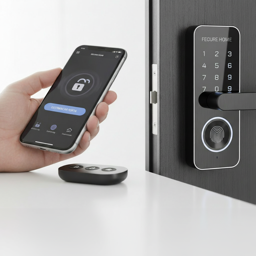 A Fechadura Inteligente com App permite gerenciar acessos com maior controle e praticidade. Pelo smartphone, você pode operar a fechadura, acompanhar registros de acesso e administrar permissões conforme sua rotina.